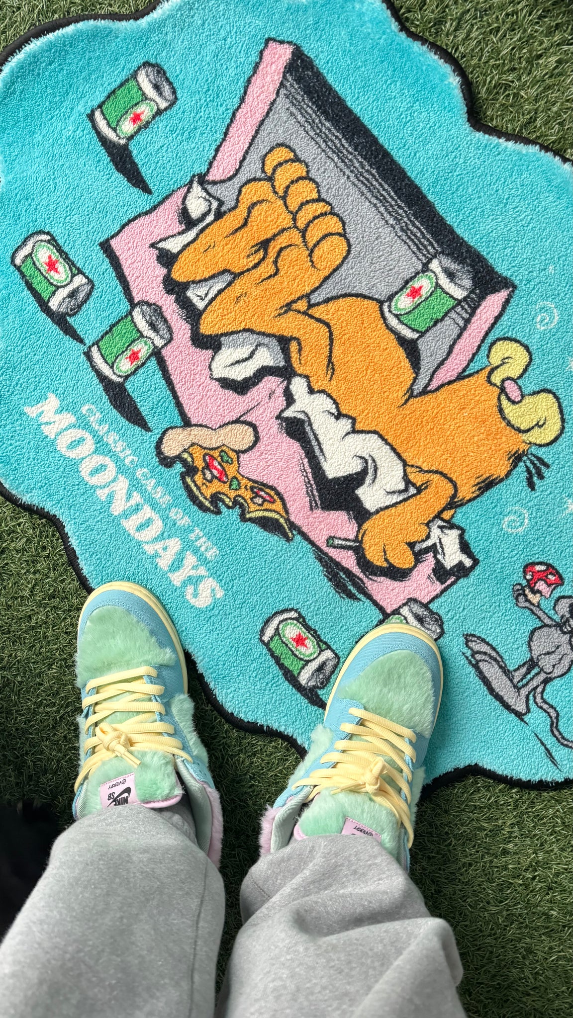 Always a case of the Moondays! This rug is 36" wide and soft not like the short commercial rugs. Throw it in the sneaker room, hang it on the wall, take a cat nap on it! It's versatile!